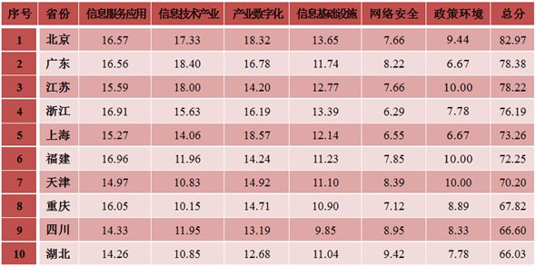 (一)10省市信息化发展水平位于全国前列