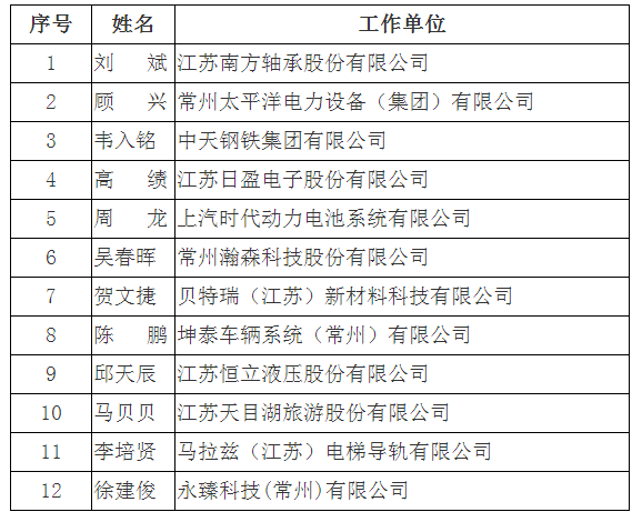 常州市企业优秀首席信息官(CIO)培育对象公示名单